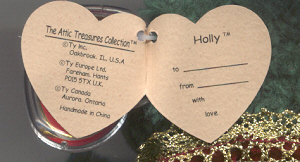 | Comments: velour feet and paws. Sixth generation tag reads "Holly" and the tag line on the seventh generation reads "Happy Holly-Days!" | ||