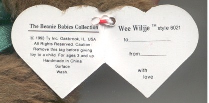 Comments: velour feet and paws Wee Wiljje error hang tag with "Beanie Babies Collection."